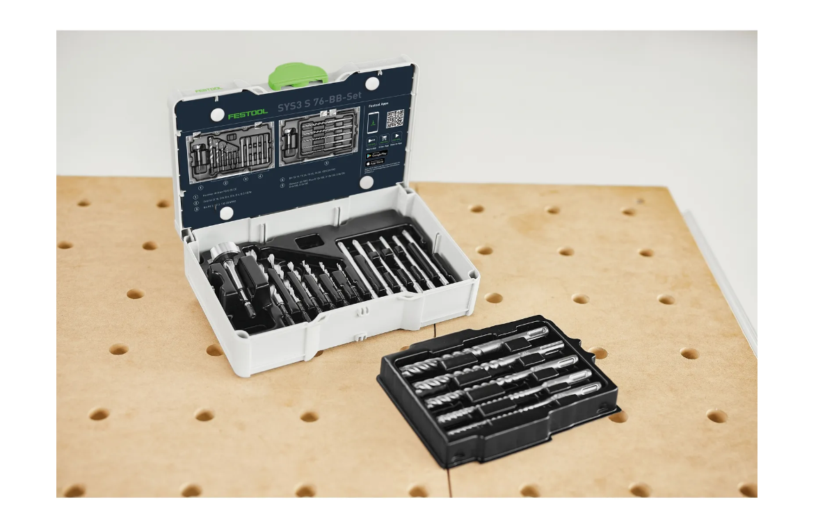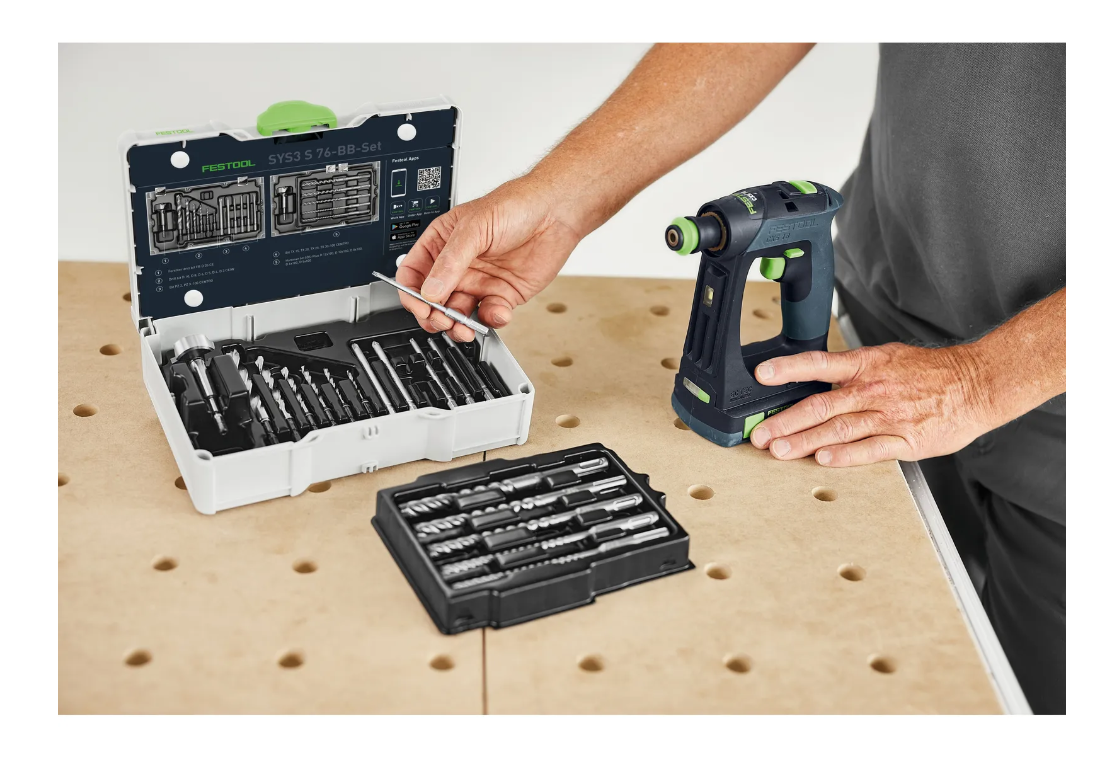 Zestaw SYS3 S 76-BB-Set Festool łączy kompletność, trwałość i wygodę użytkowania. Systemowa kompatybilność z wiertarkami i wkrętarkami Festool zwiększa efektywność pracy, a operator zyskuje wszystkie potrzebne elementy w jednym miejscu.