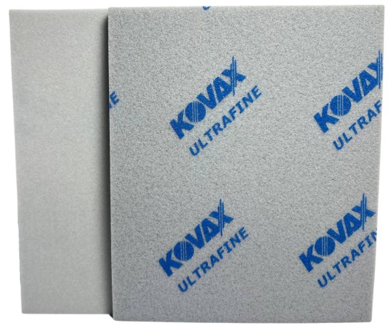 Kovax 733 High Flex UltraFine to elastyczna gąbka ścierna 140×115×6 mm w gradacji P400–P600. Umożliwia równomierne szlifowanie krawędzi, profili oraz powierzchni płaskich, a także daje dobrą kontrolę, wysoką trwałość i czyste wykończenie przy pracy na sucho oraz na mokro.